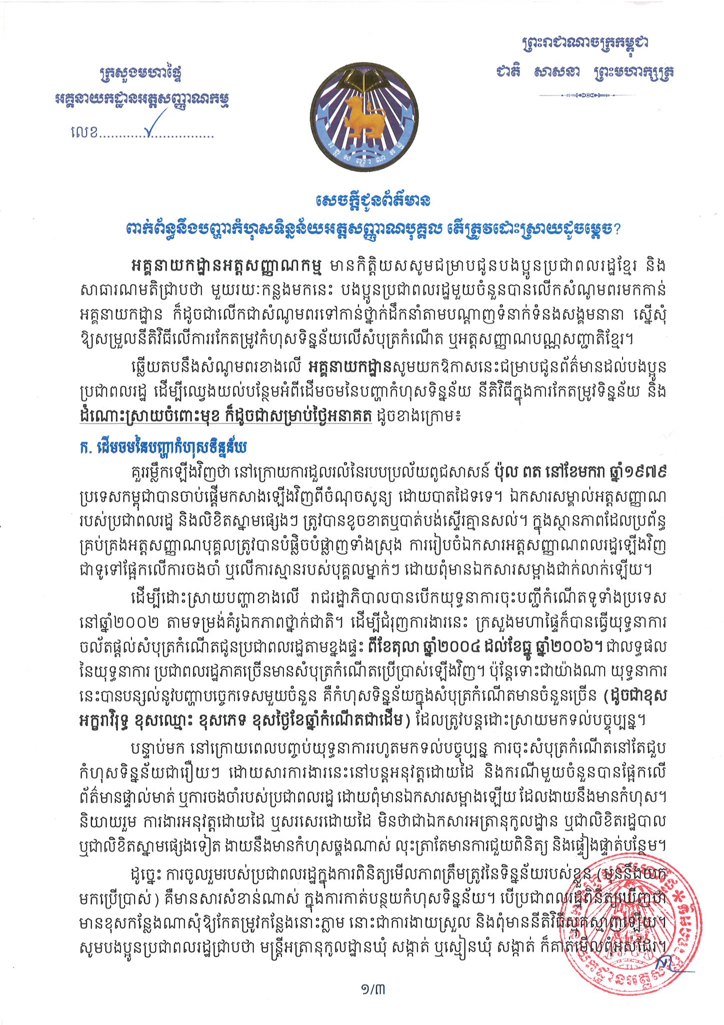 On 19 November 2025, the General Department of Identification issued an announcement on the solutions regarding the issue of personal identification data errors. To understand the origin of the data error, the procedure for correcting the data, and solutions for the present as well as ...