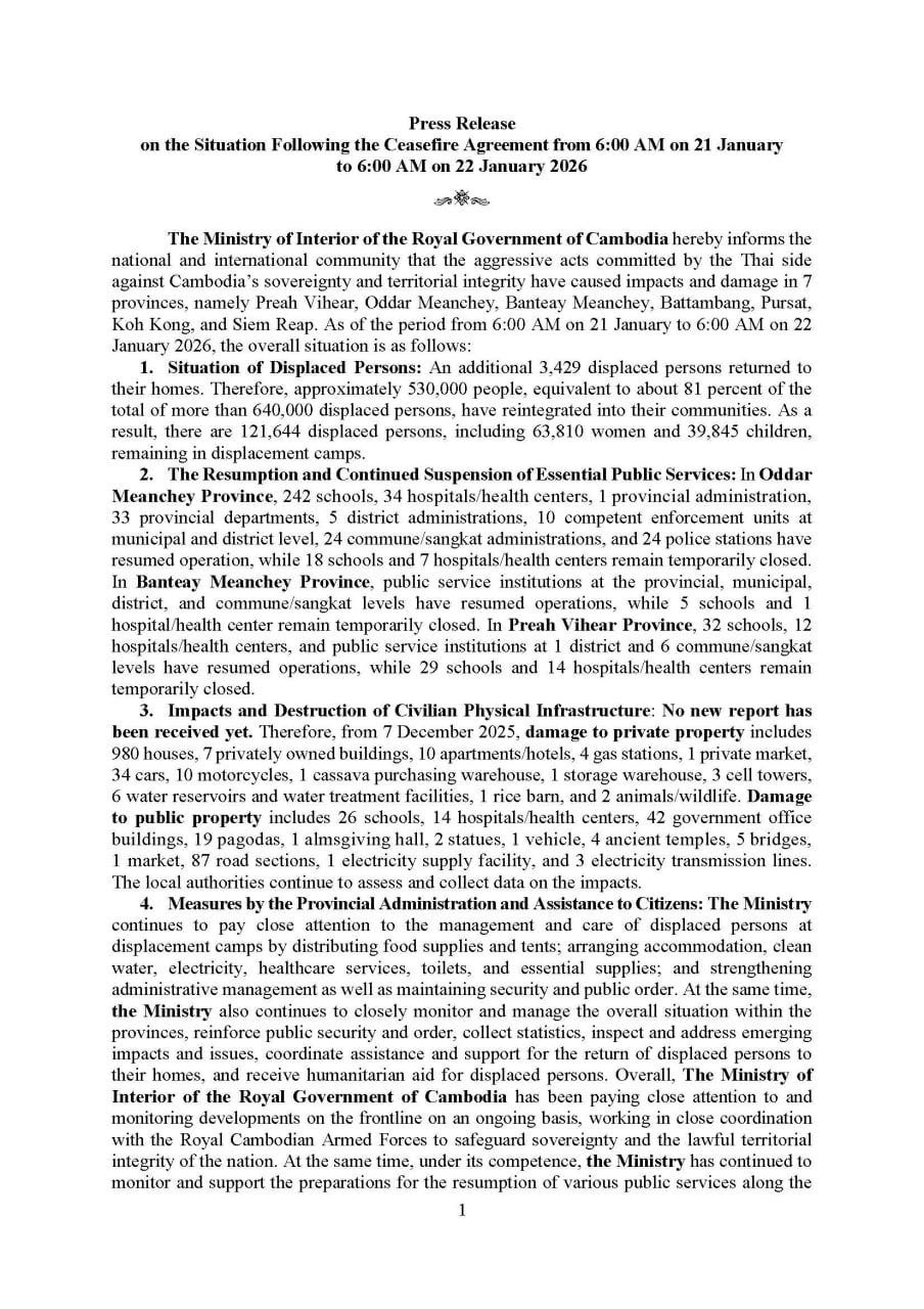 • Cambodia’s Ministry of Cults and Religion has issued a formal protest against the Thai military for installing a Buddha statue in An Ses village, Preah Vihear province, describing the act as a violation of Cambodia’s sovereignty and a breach of bilateral and international agreements. ...