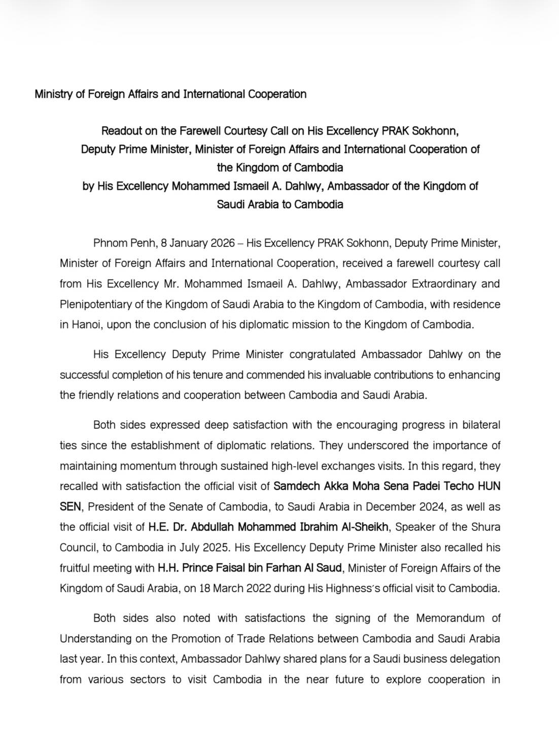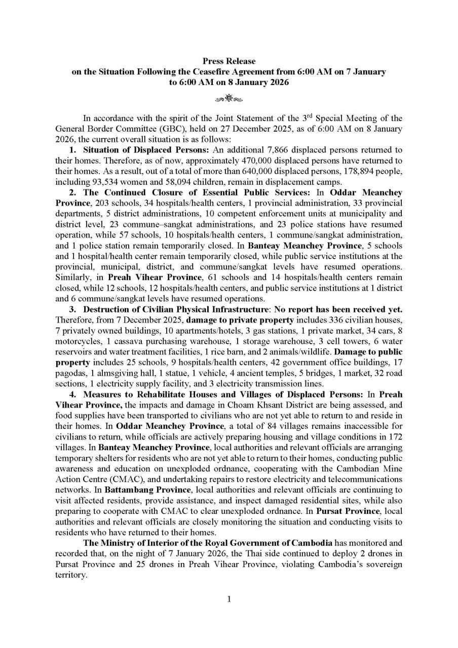 • As the Thai military remain present in Cambodia territory, blocking Cambodian civilians from returning to their homes, Prak Sokhonn, Minister of Foreign Affairs and International Cooperation, has emphasised the importance of consistency between commitment on paper and the action on the ground. ...