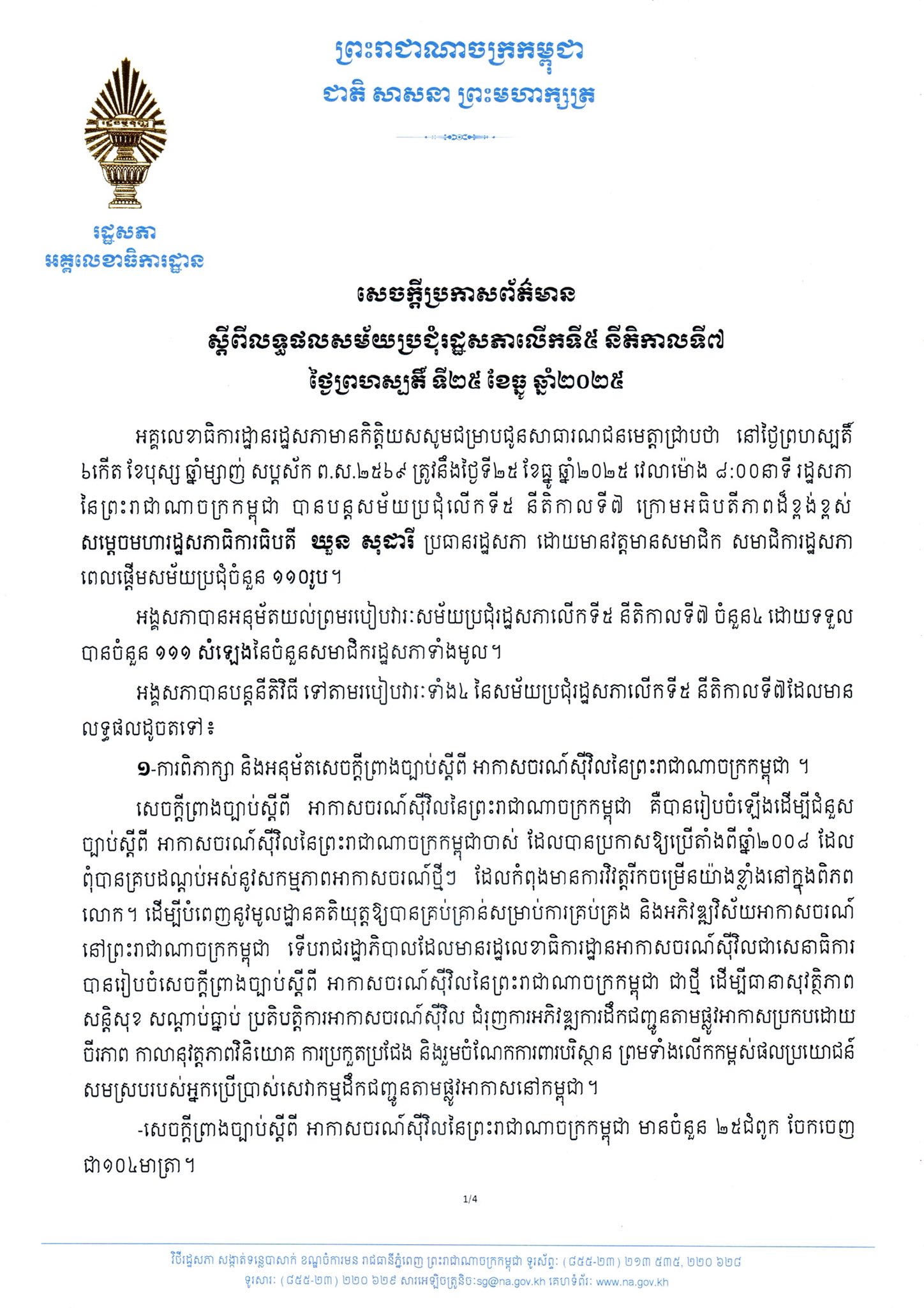 On 24 December 2025, the Cambodian Human Rights Committee (CHRC) issued a statement vehemently condemning Thailand’s continued military attacks deploying heavy weaponry, fighter jets, and cluster munitions against populated areas in Cambodian provinces, which have killed 21 civilians, injured 83 others, and displaced over 600,000 ...