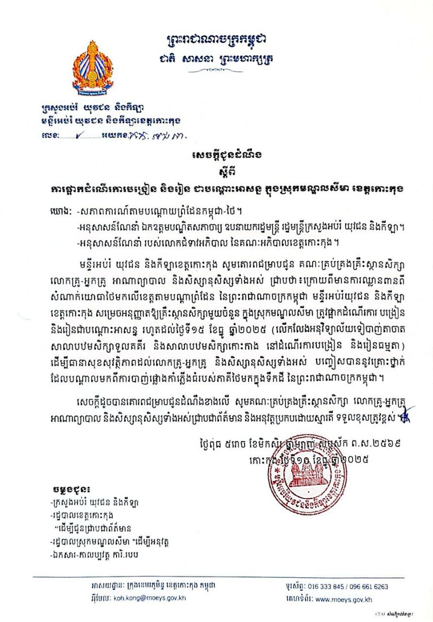 • The United States on December 9 expressed concern over renewed clashes and casualties along the Cambodian–Thai border, calling on both sides to honor the Peace Accords, according to a press release from the U.S. State Department. ...