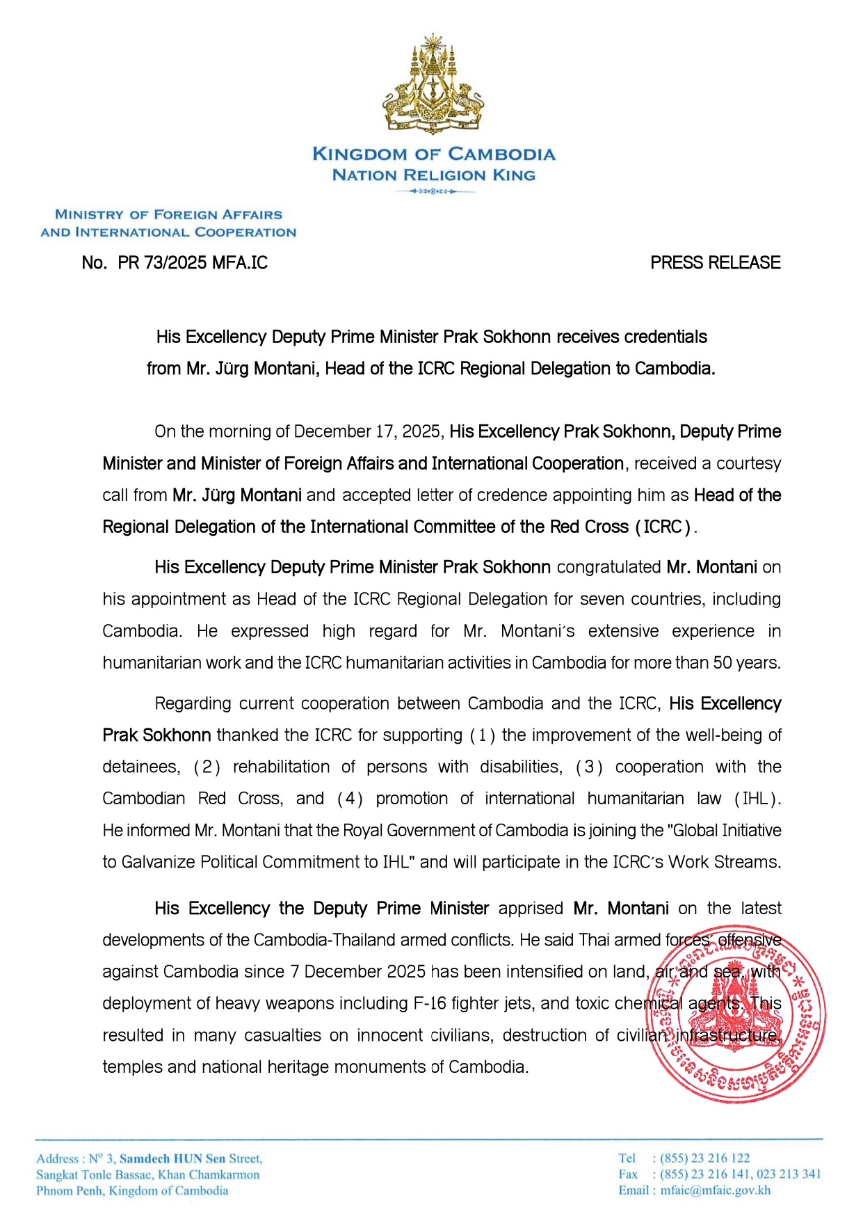 • On 16 December 2025, the Royal Embassy of Cambodia to France issued a statement advising travelers to avoid transiting through Thailand and using Thai Airlines when traveling to Cambodia. This recommendation follows reports of European passengers facing “unacceptable” and rigorous checks at Bangkok airport, including prolonged ...