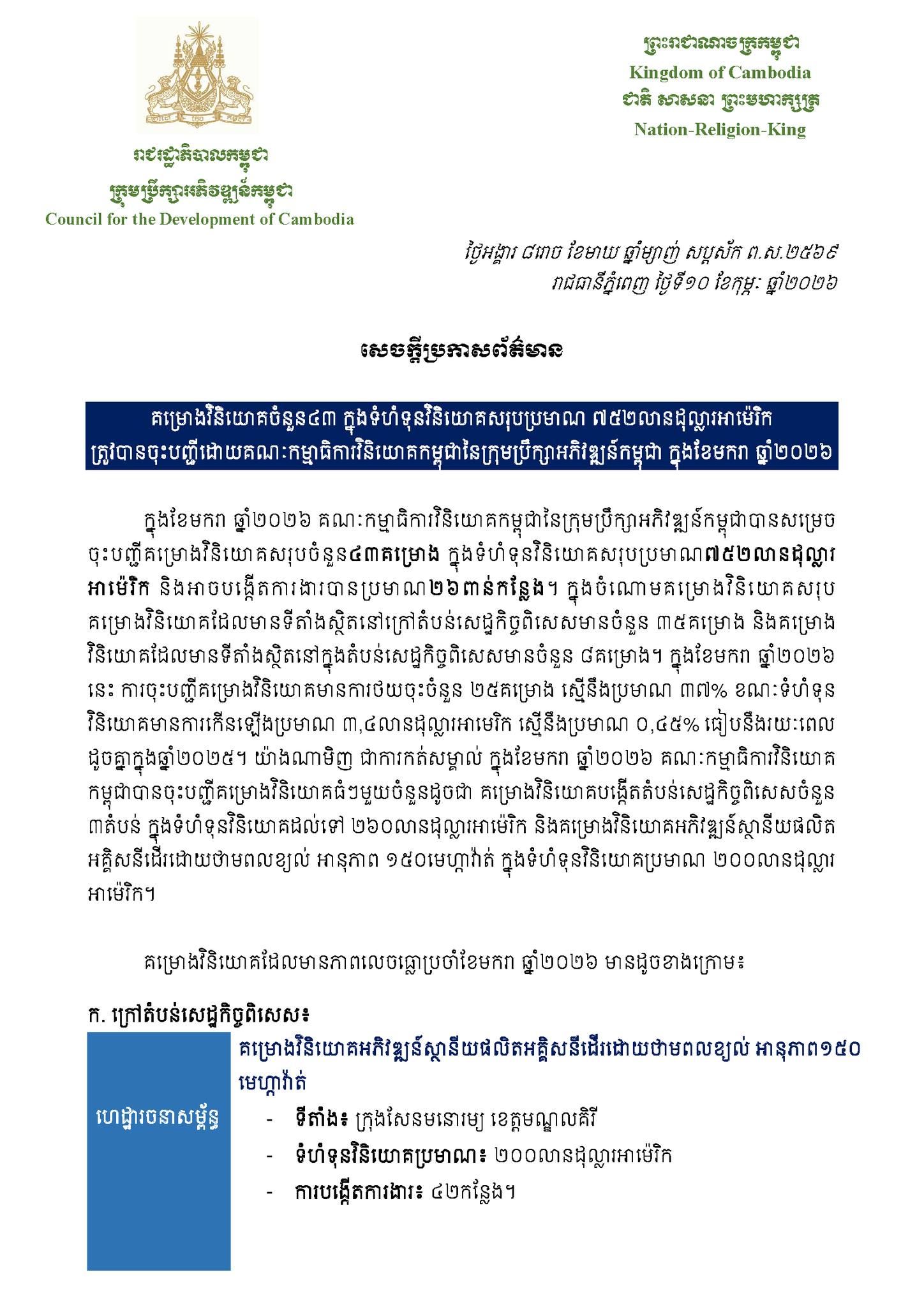 • The government’s efforts to enhance the attractiveness of the tourism sector, along with the construction of new infrastructure — especially Techo International Airport — are reportedly paying dividends, attracting more investment. ...