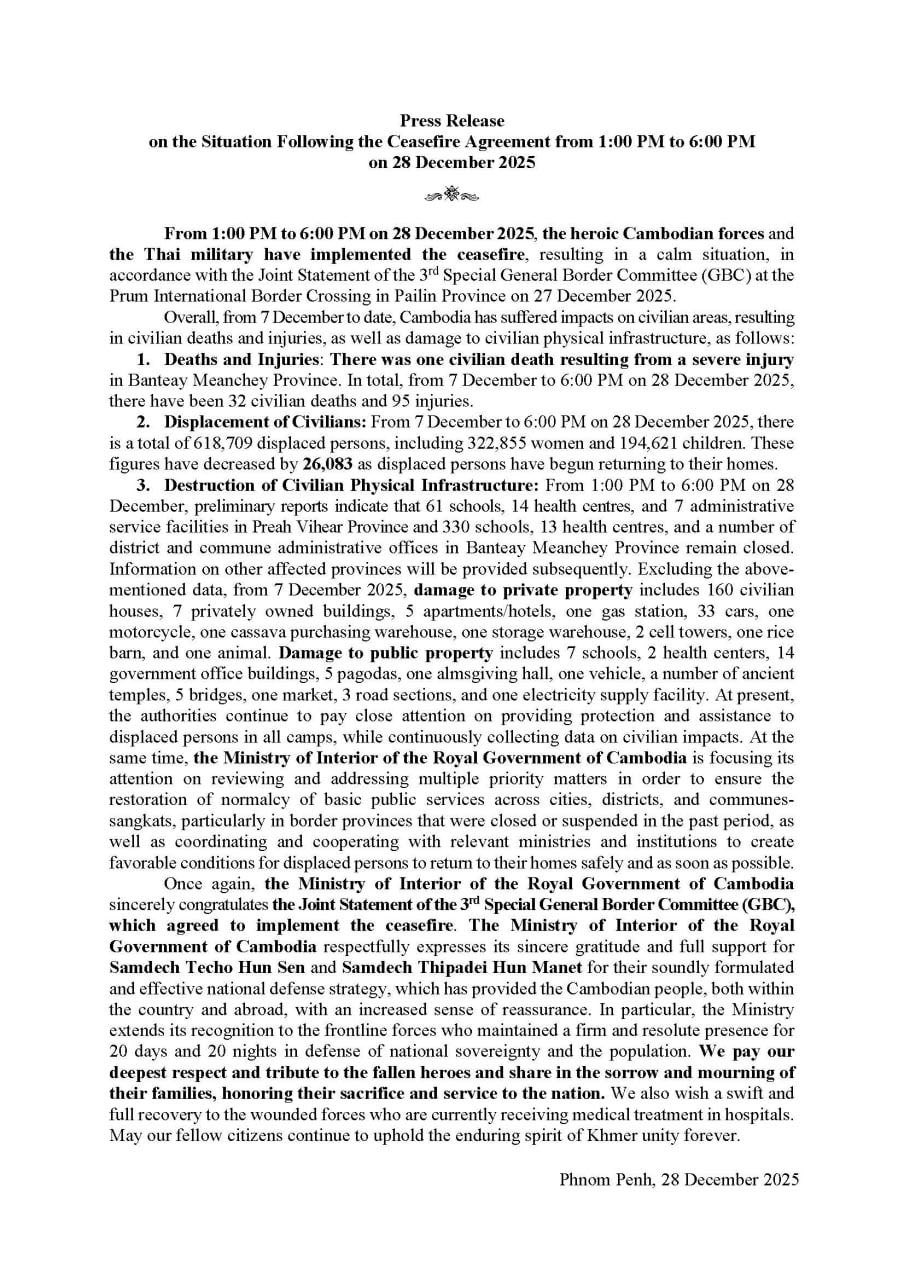 • Cambodian Minister of Environment Eang Sophalleth has described Thailand’s aggressive incursions into Cambodian territory through aerial bombardment, artillery shelling and the use of toxic smoke as violations of international law that have destroyed natural resources, actions that should be considered “environmental crime”. ...