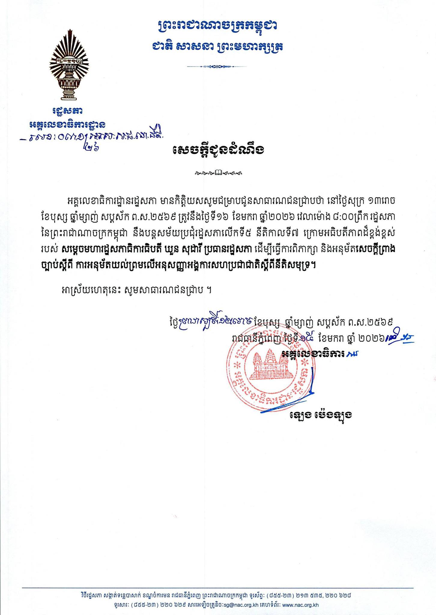 On 14 January 2026, the State Secretariat of Border Affairs issued a press release on Cambodia’s request to hold and Thai’s request to postpone for the second time the special meeting of the Joint Boundary Commission (JBC).While awaiting the upcoming special meeting of the JBC ...