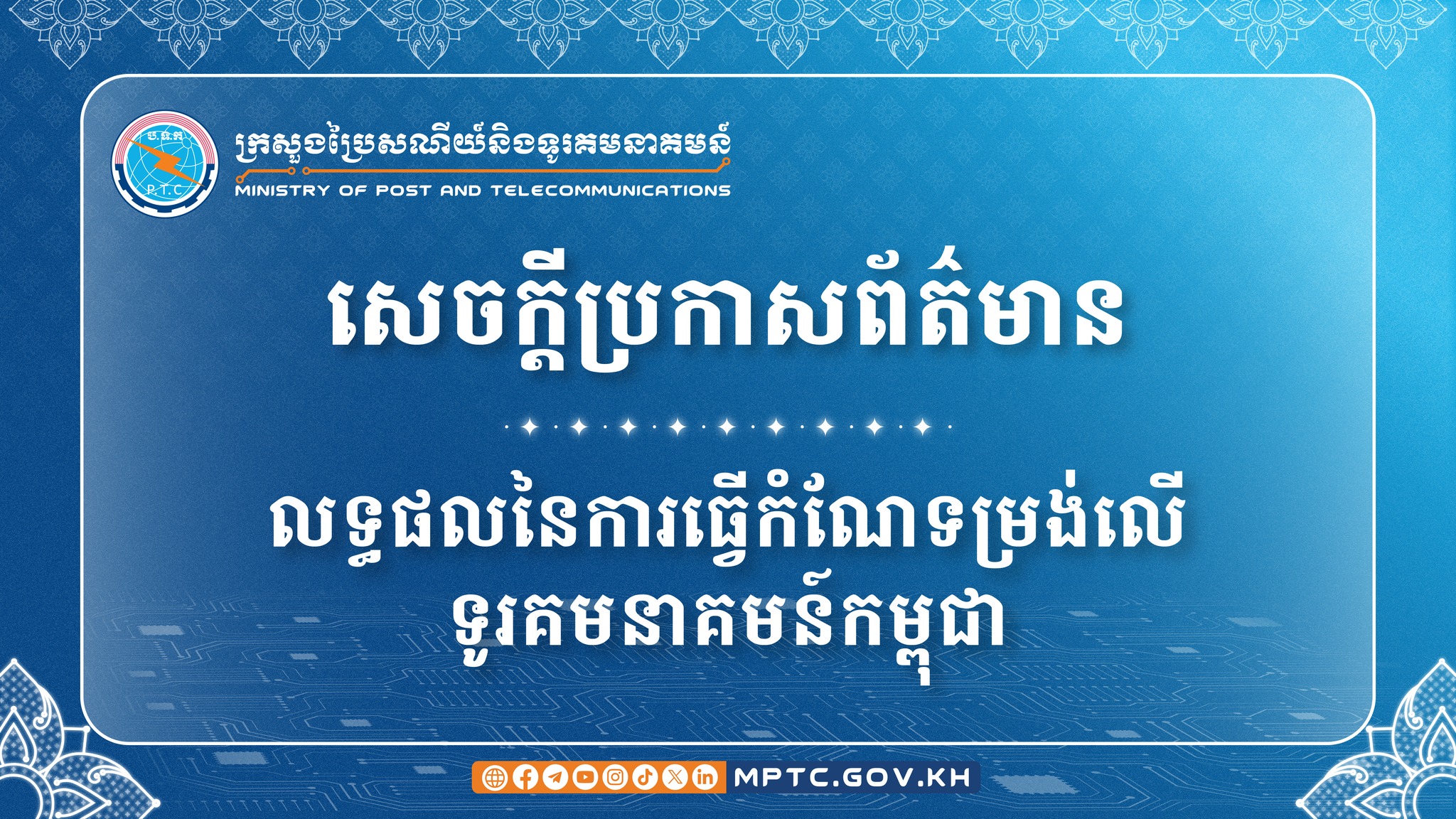 • On 2 January 2026, the Ministry of Posts and Telecommunications issued an announcement on the results of the reform of Telecom Cambodia.Since 2021, the Ministry of Posts and Telecommunications has introduced in-depth reform measures for Telecom Cambodia. These reform measures over the past approximately four ...