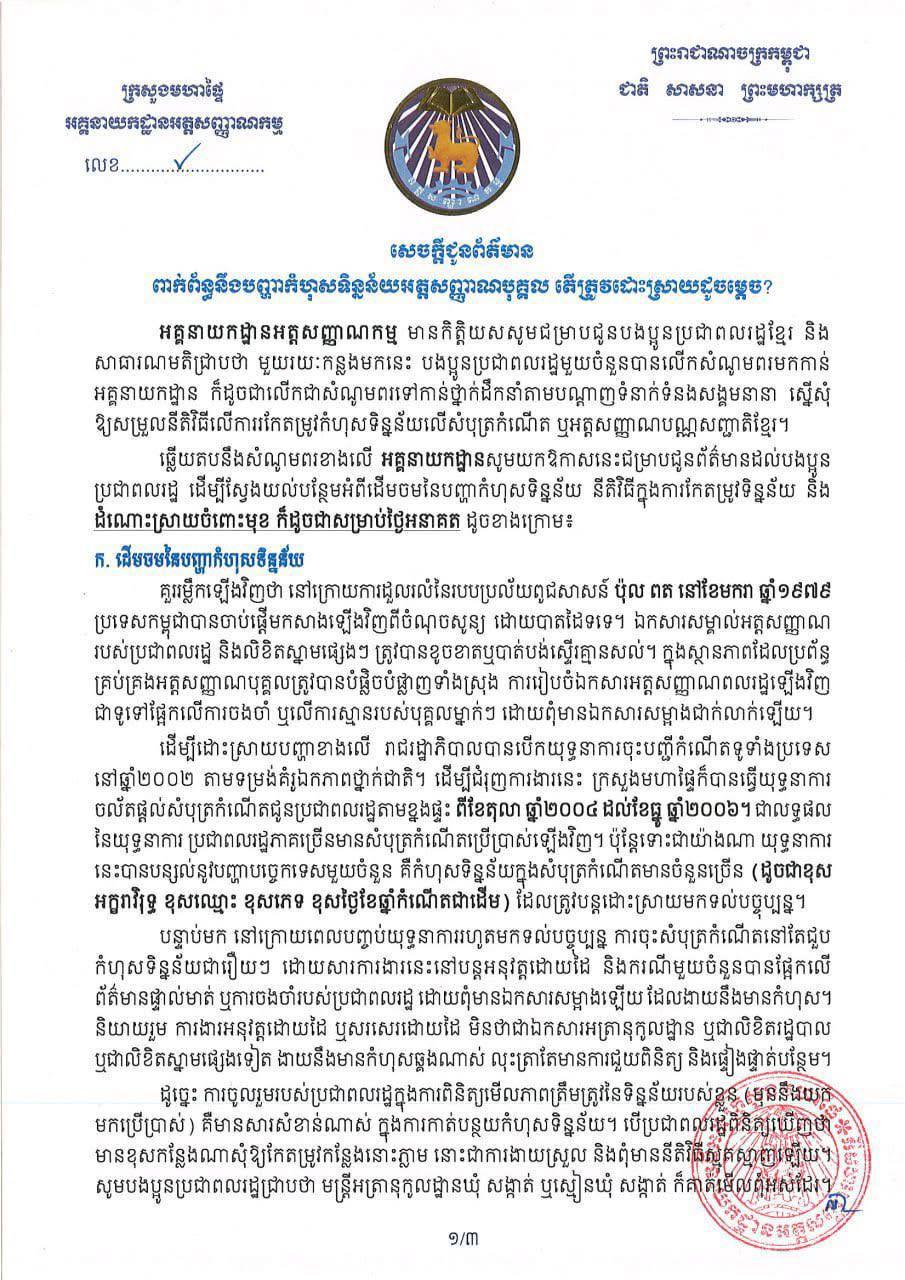 On 19 March 2025, General Department of Identification of the Ministry of Interior issued a notice on how to resolve personal identity data errors.The notice explains that identity data errors stem from historical factors such as the loss of civil records after 1979 and manual ...