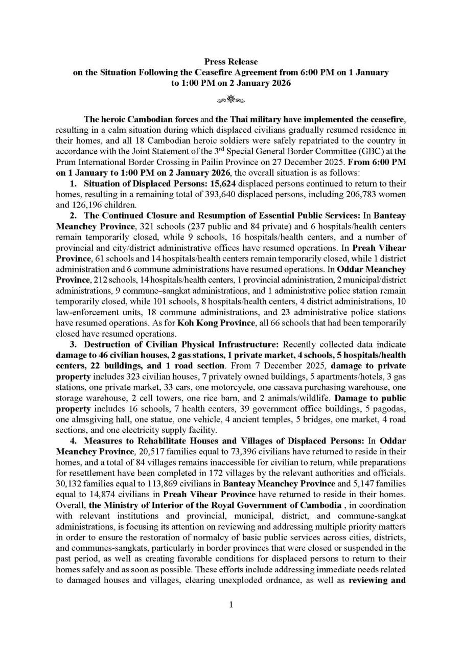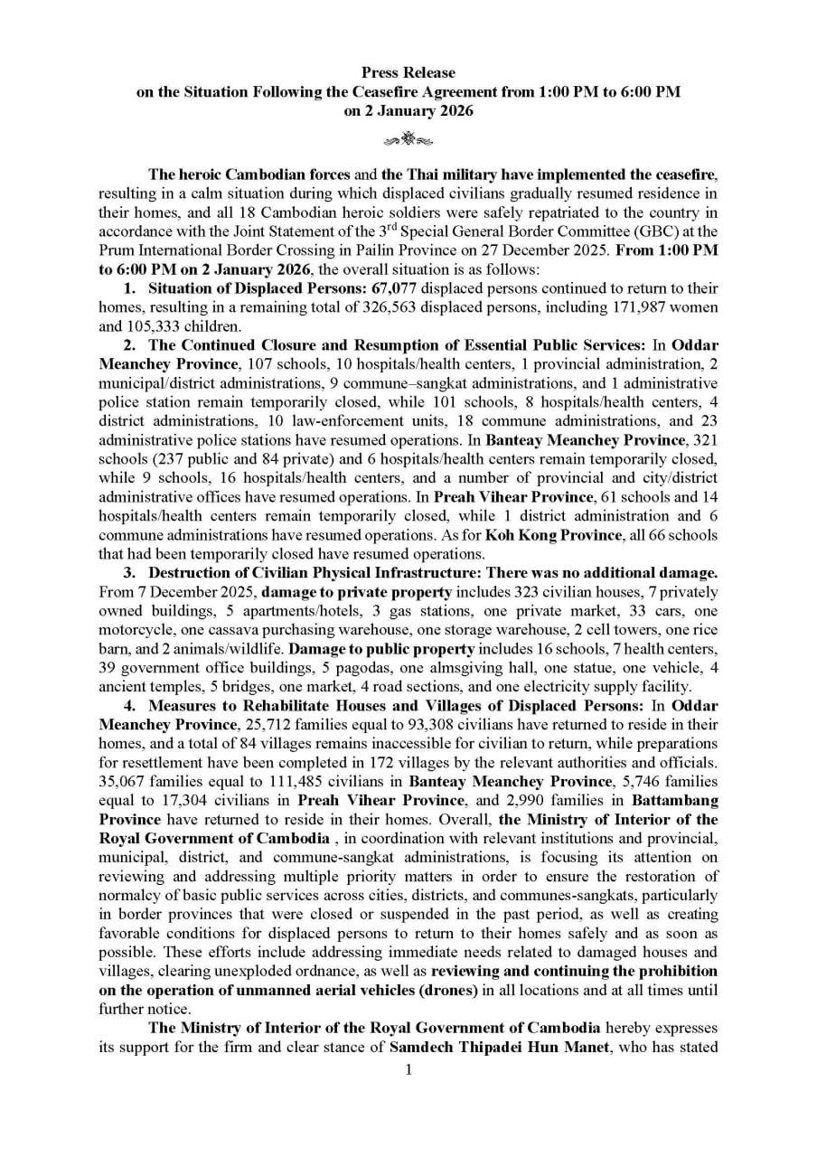 • Cambodian Minister of Environment Eang Sophalleth has described Thailand’s aggressive incursions into Cambodian territory through aerial bombardment, artillery shelling and the use of toxic smoke as violations of international law that have destroyed natural resources, actions that should be considered “environmental crime”. ...