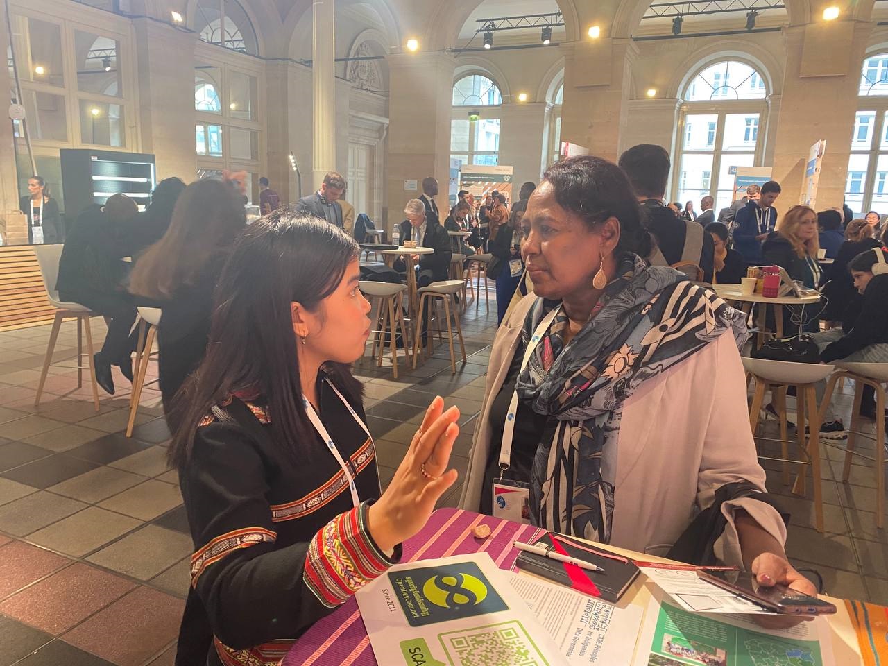 It was my pleasure to be in the Forum wearing my Jarai attire and present the project at the 5th edition, which was held at the Palais Brongniart on November 11 and 12, 2022. The 5th edition focused on strengthening civic space, citizens, and civil society so they can play a defining role in power balances, from local to global governance. Additionally, initiatives to empower women and promote gender equality were especially emphasized. Seventy projects were displayed, and 80 panel discussions were presented with 4,800 participants. Even though our team members were busy with visitors at our booth, I could tell from my presentation that the audiences were quite interested in our project. I talked about my IP communities, cultures, educational situation, clothing, etc. Realizing today issues was a good experience. We also worked together to discover solutions, met potential people, and had the chance to speak with leaders to gain insight into how they were able to address earlier issues successfully. We need leaders who are willing to listen to innovative ideas and are genuinely committed to putting those solutions into practice.