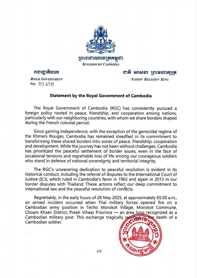 សេចក្តីថ្លែងការណ៍ព័ត៌មាន ស្តីពីជម្លោះដែលកំពុងបន្តរវាងកម្ពុជា និងថៃ