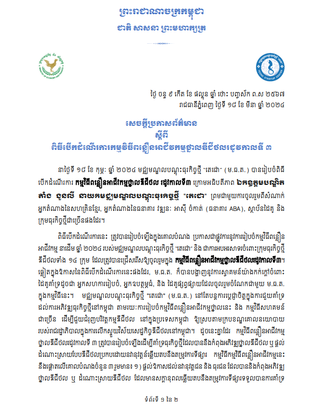 On 18 March 2024, Techo Startup Center issued a press release on the launching ceremony of the Digital Platform Accelerator Cohort 3, which was presided over by H.E. Dr. Taing Nguonly, Executive Director of Techo Startup Center, along with participation from other program partners.
