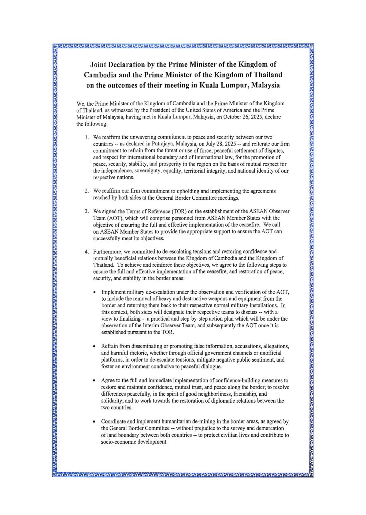 • Cambodia Wednesday reiterated that the lack of Thai imports has not disrupted Cambodia’s domestic markets, instead, it has encouraged Cambodians to support locally produced goods, bolstering domestic industries and ensuring stable prices. ...
