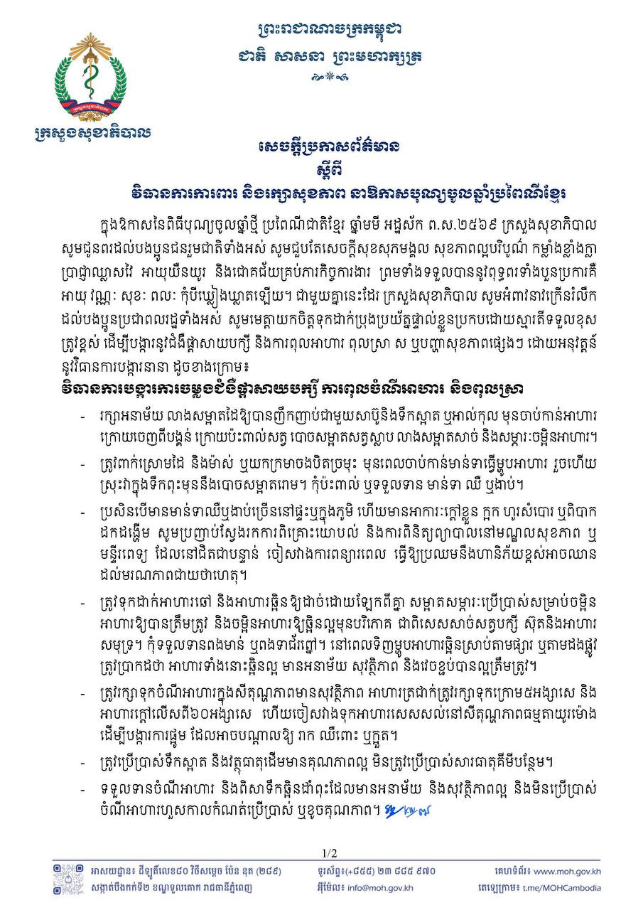 Press release on measures to protect and maintain health on the occasion of the Khmer New Year