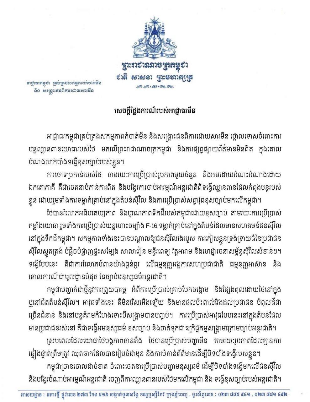 • សេចក្តីណែនាំ៖ ការបញ្ឈប់ការផ្សព្វផ្សាយនិងចែករំលែកមាតិកាលើបណ្តាញសង្គម ដែលមានប្រភពពីប្រទេសថៃ ឬមិនមានប្រភពច្បាស់លាស់
