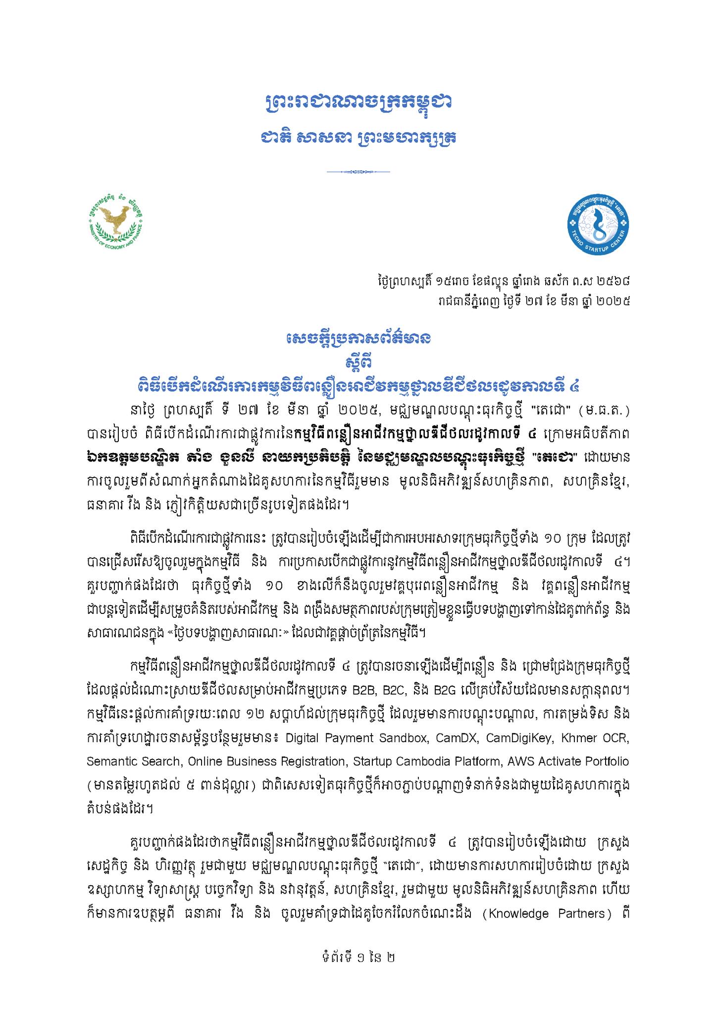 សេចក្តីប្រកាសព័ត៌មាន៖ ពិធីបើកដំណើរការជាផ្លូវការកម្មវិធីពន្លឿនអាជីវកម្មថ្នាលឌីជីថលរដូវកាលទី ៤