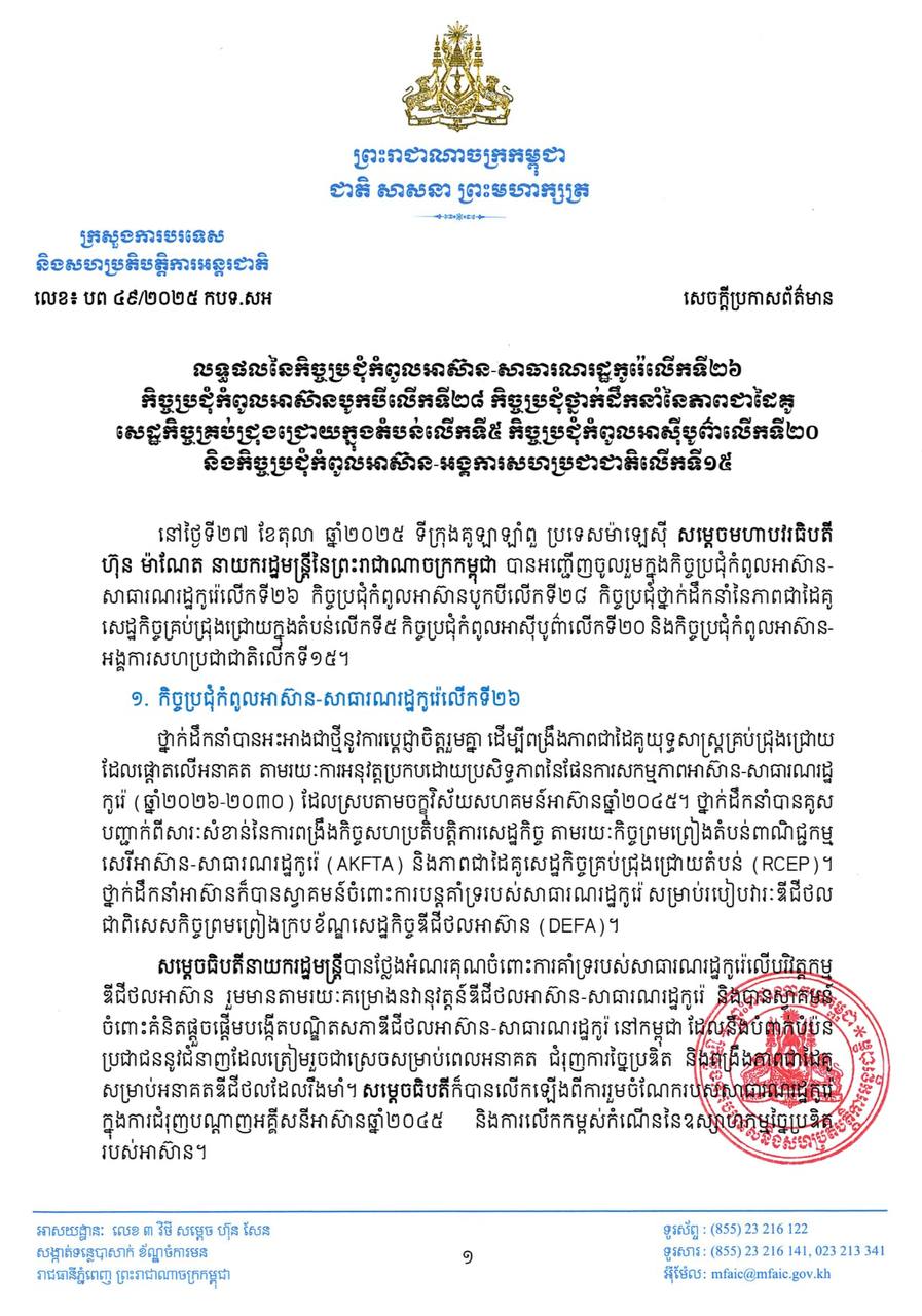 • កម្ពុជា និងអូទ្រីសបានបញ្ជាក់ជាថ្មីនូវការប្តេជ្ញាចិត្តក្នុងការពង្រឹង និងពង្រីកកិច្ចសហប្រតិបត្តិការពាណិជ្ជកម្មទ្វេភាគី ដោយផ្តោតជាពិសេសលើវិស័យសំខាន់ៗដូចជា ទេសចរណ៍ កសិកម្ម ឧស្សាហកម្ម និងឡូជីស្ទីក។ ...