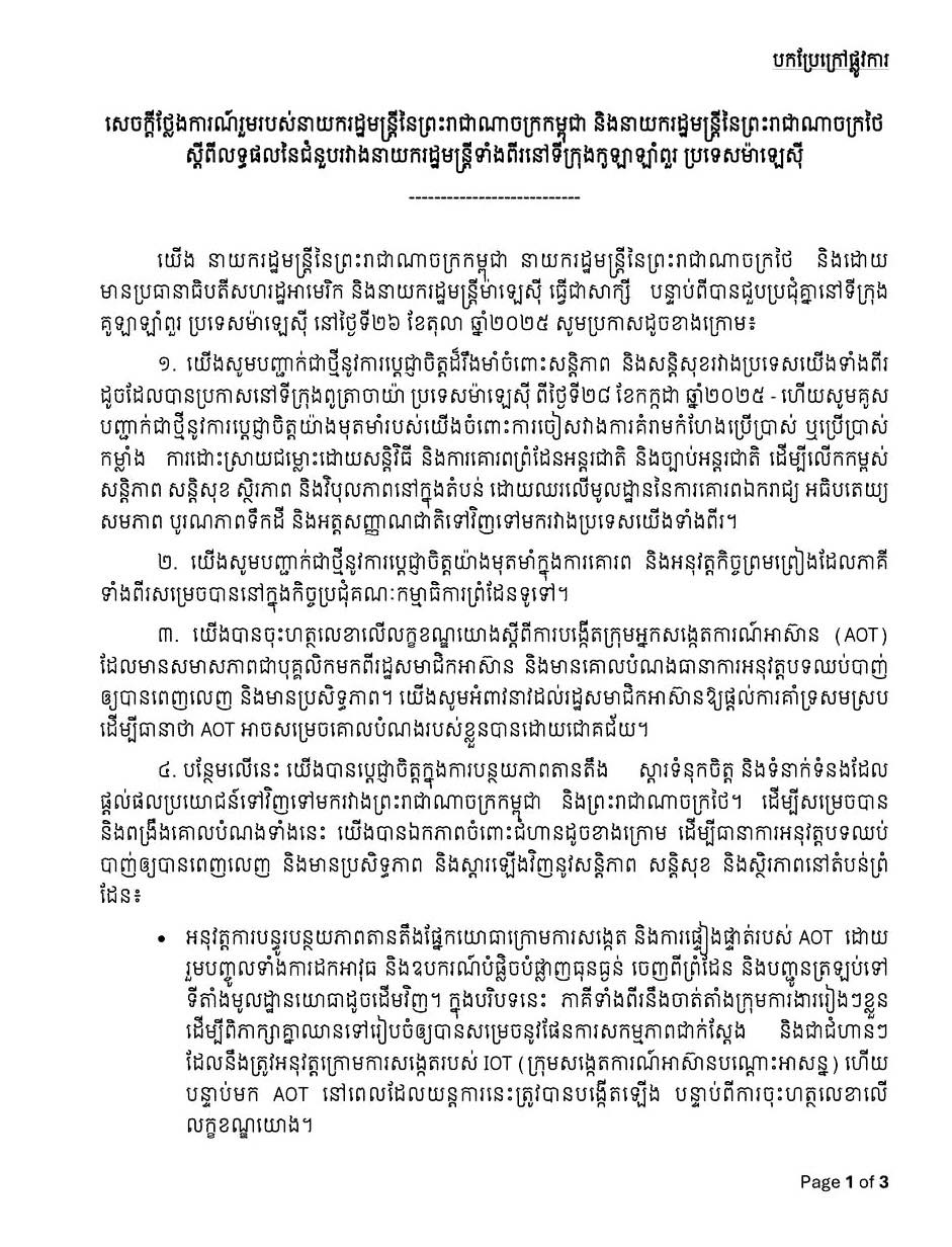 • កម្ពុជា និងអូទ្រីសបានបញ្ជាក់ជាថ្មីនូវការប្តេជ្ញាចិត្តក្នុងការពង្រឹង និងពង្រីកកិច្ចសហប្រតិបត្តិការពាណិជ្ជកម្មទ្វេភាគី ដោយផ្តោតជាពិសេសលើវិស័យសំខាន់ៗដូចជា ទេសចរណ៍ កសិកម្ម ឧស្សាហកម្ម និងឡូជីស្ទីក។ ...