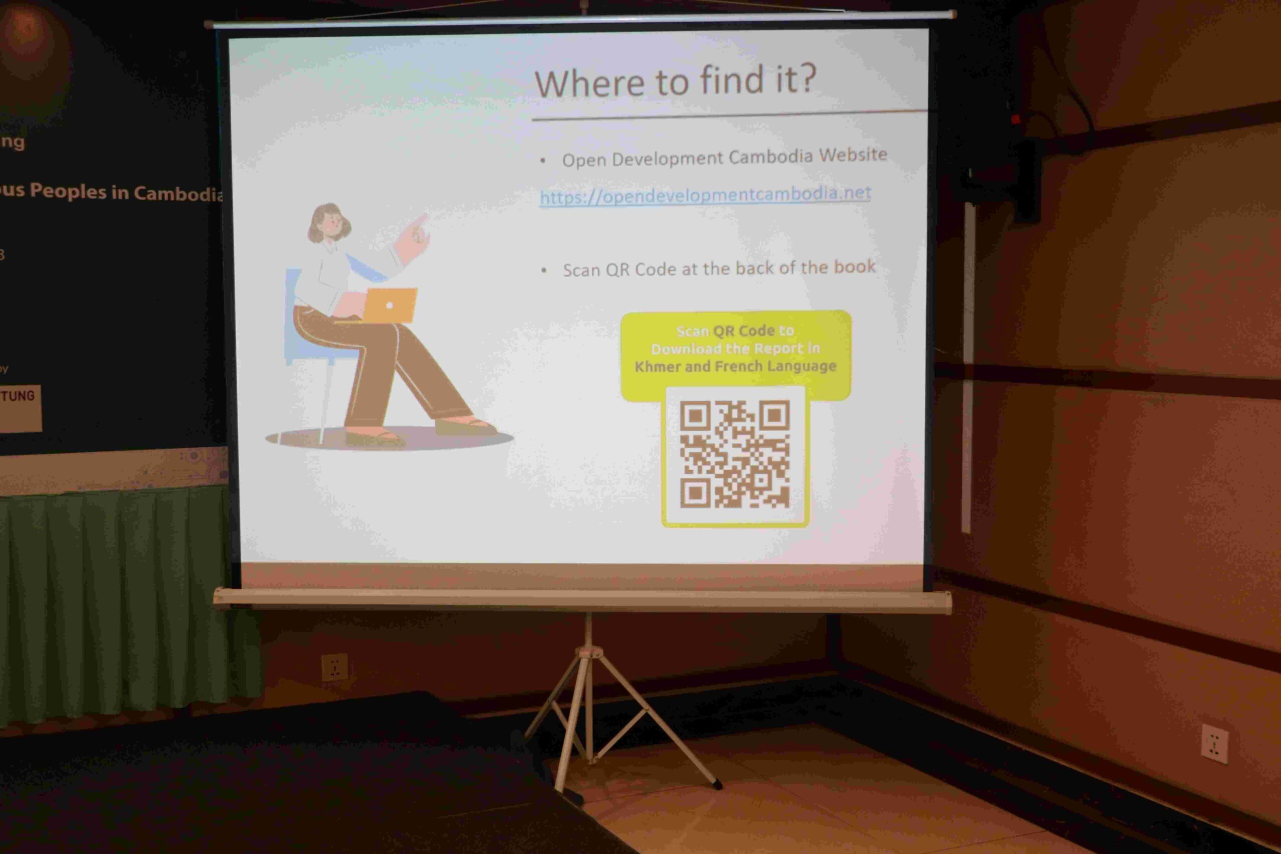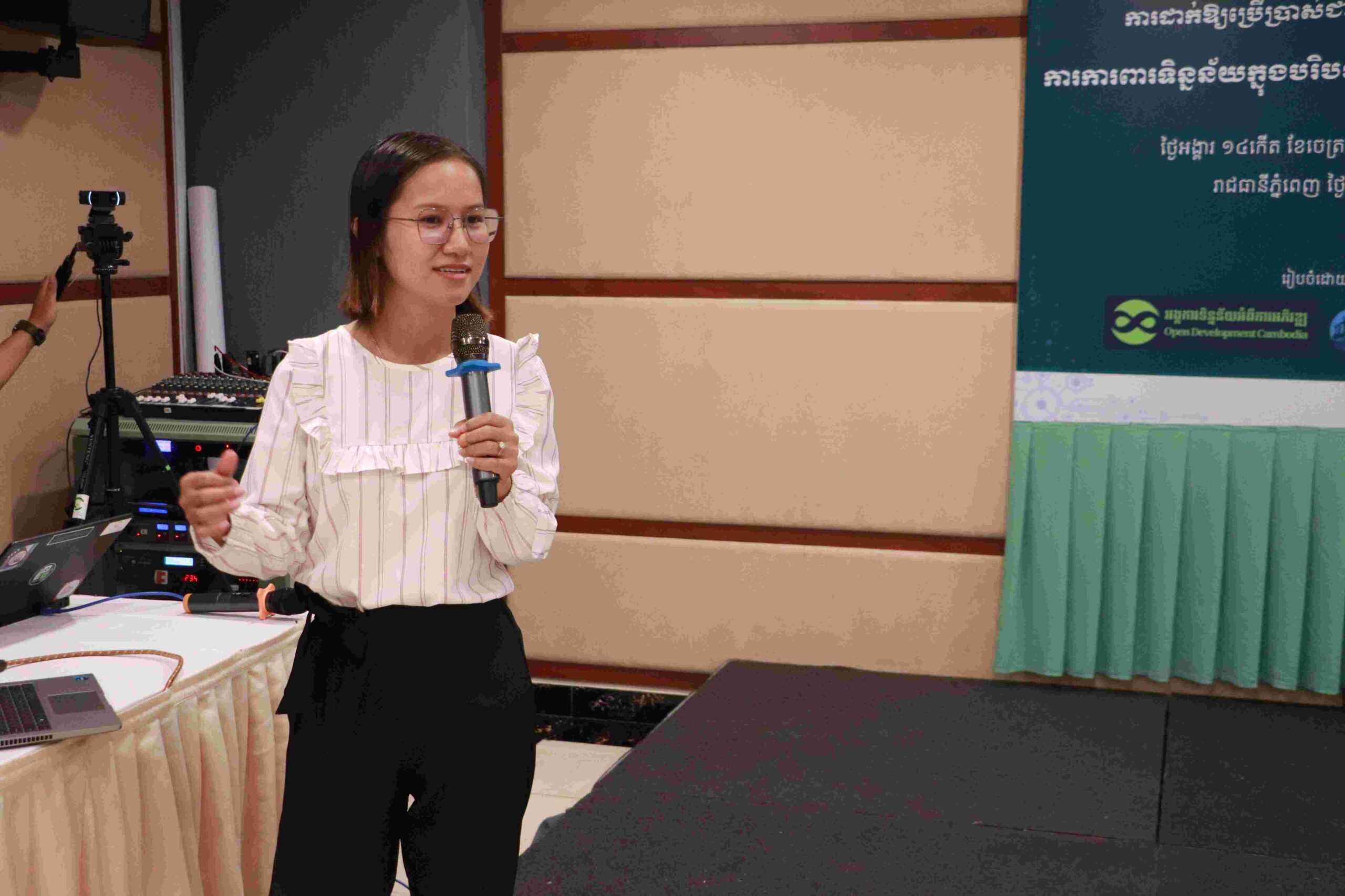 អ្នកស្រី គឹម ឈួនវួច បណ្ណាធិការ-អ្នកស្រាវជ្រាវផ្នែកធនធានធម្មជាតិ និងដីធ្លី/អ្នកសម្របសម្រួលគម្រោង នៃអង្គការអូឌីស៊ី បានបង្ហាញពីទិដ្ឋភាពទូទៅនៃរបាយការណ៍ និងរបៀបដែលអ្នកចូលរួមទាំងអស់អាចទាញយករបាយការណ៍តាមរយៈគេហទំព័រអូឌីស៊ី និង QR កូដ នៅខាងក្រោយរបាយការណ៍ដែលបានផ្តល់ឱ្យ។