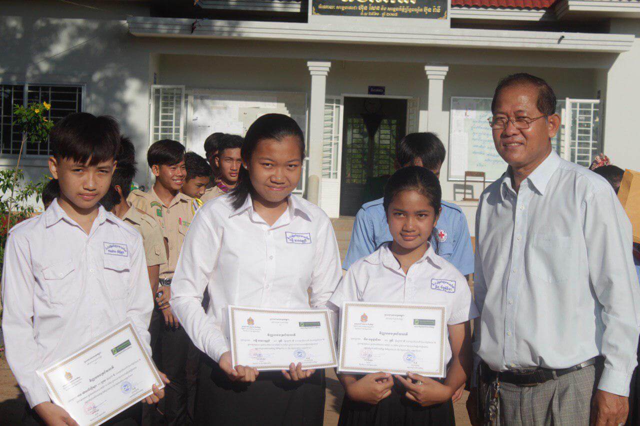 This National Reading Day was attended by 92 participants in total (58 females). Seven members from Chea Sim Tbeng Mean Chey high school, one member of Preah Vihear provincial department of Education, Youth and Sports, and 84 students (56 females). Nine students of which three from grades seven, eight and nine involved in the reading competition. Three students from each grade were eventually selected for the number one awards and six others were awarded prizes of encouragement. Students who attended the competition were given some reading books which encourage to read more and share with other students in their class.